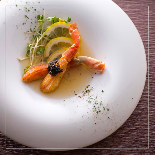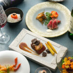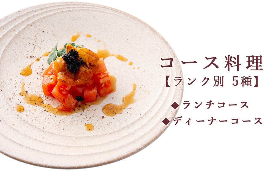 当店では厳選した国産食材や日本の出汁文化を、フランス産の調味料やフレンチの技法を使用してランチ・ディナーのコースご提供しております。「お客様に喜んで頂きたい」という想いを季節の食材で表現。