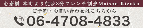 心斎橋・本町より徒歩8分フレンチ割烹Maison Kizukuご来店お待ち申し上げております。